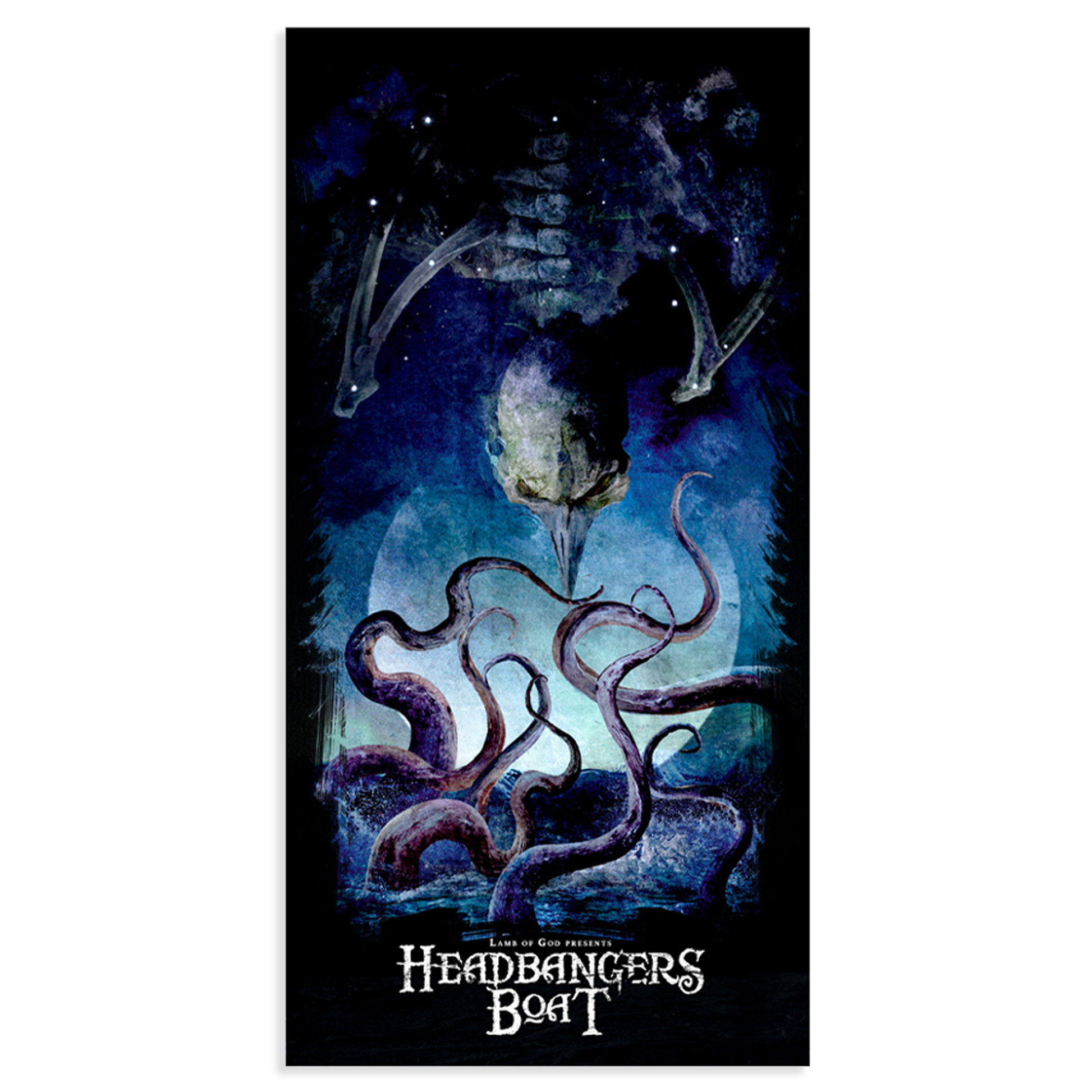 The HBB 2025 Beach Towel features artwork inspired by Lamb of God's Headbangers Boat.
